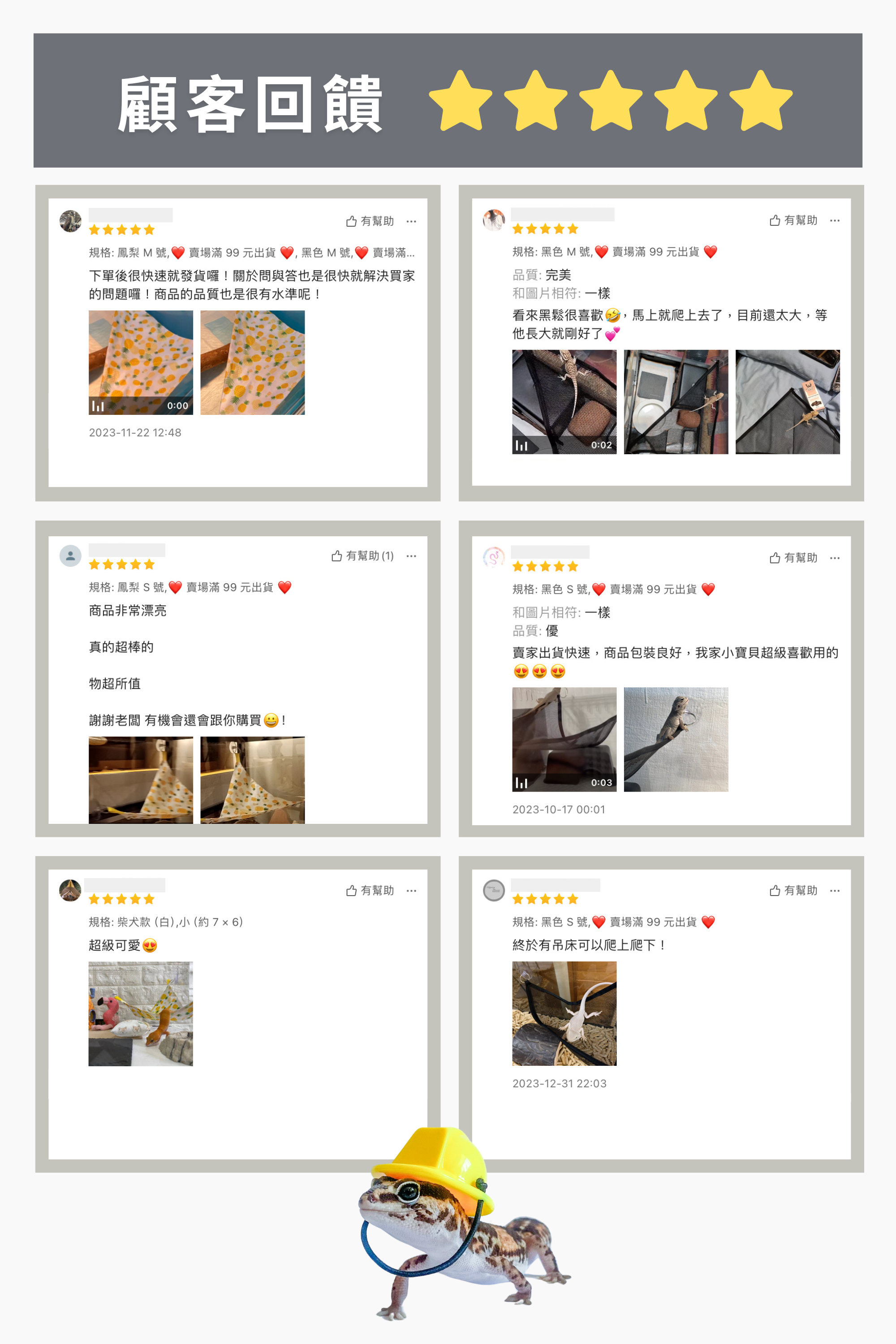 - S 號:守宮/幼體蜥蜴/幼體蛇類/倉鼠/蜜袋鼯等寵物